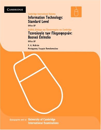 For complete syllabus coverage of the Cambridge International Diplomas. Cambridge International Diploma: Greek Edition Skills Award in Information Technology. Both levels of the Cambridge International Diploma in Information Technology are fully covered in these two textbooks and fully translated into Greek. The author, an IT specialist, writes in a lively and accessible style and uses a step-by-step approach to introduce students to the concepts and skills required at this level. This edition is compatible with Microsoft Office XP.